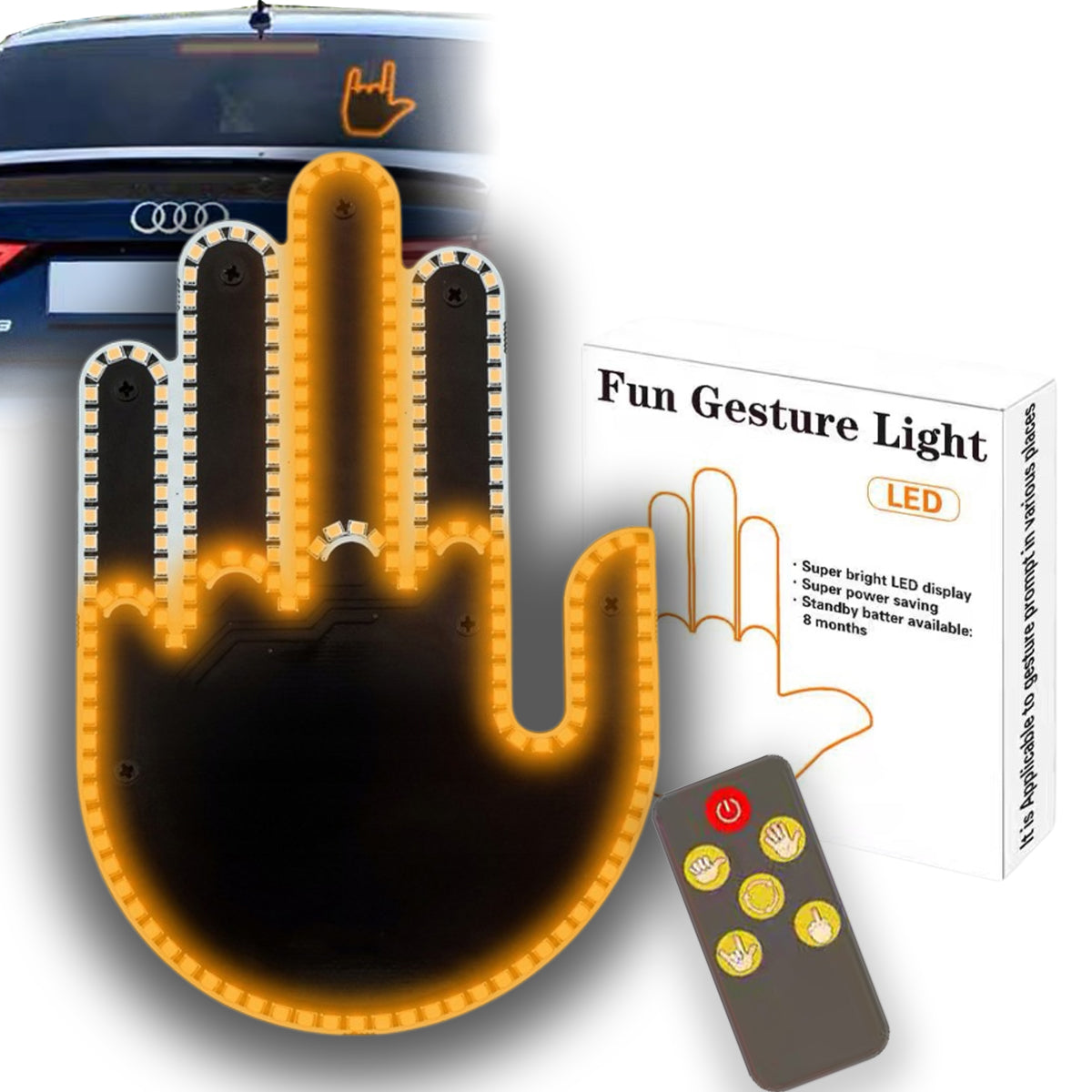 Innowacyjny sygnalizator gestów LED montowany na tylnej szybie to idealne rozwiązanie, by w prosty i uprzejmy ;) sposób komunikować się z innymi uczestnikami ruchu. Wyrażaj podziękowanie, ostrzeżenie lub emocje za pomocą jasnych ikon LED widocznych nawet w słoneczne dni!
